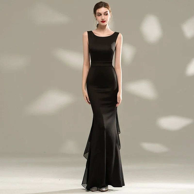 夏季絲緞無袖連身長裙/時尚優雅禮服/晚禮服/派對服