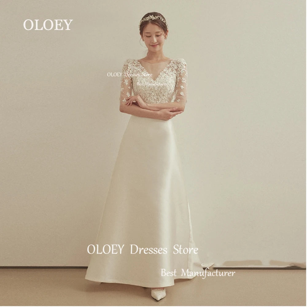 WeddLin 象牙白緞面輕婚紗|韓系五分袖 A-Line 剪裁.客製尺寸、海外/拍照婚紗