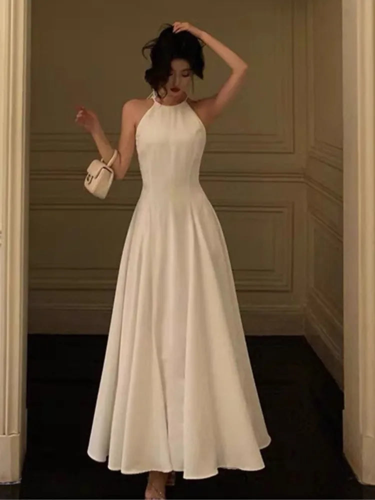 法國復古露背晚會長洋裝/純色無袖A字公主婚禮舞會長裙/新款春季