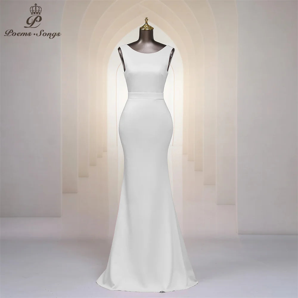 七色長袖晚禮服 緞面貼花魚尾裙 擴展婚禮派對款