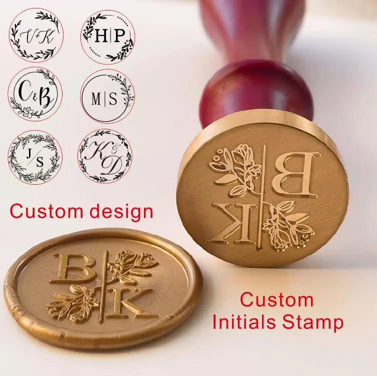 個性化婚禮蠟印章/帶有 2 個姓名首字母縮寫/定制婚禮密封蠟印章邀請印章/首字母縮寫蠟印章