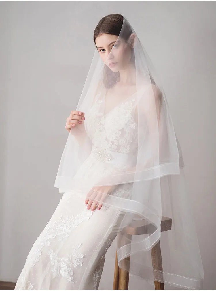 新娘婚紗頭紗|簡約手工歐美風中長款指尖頭紗