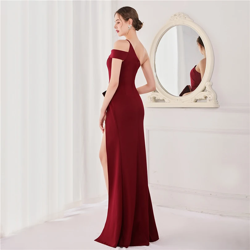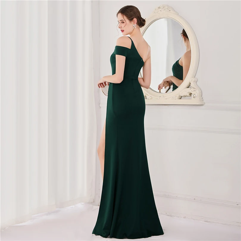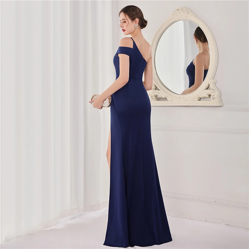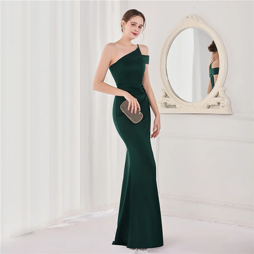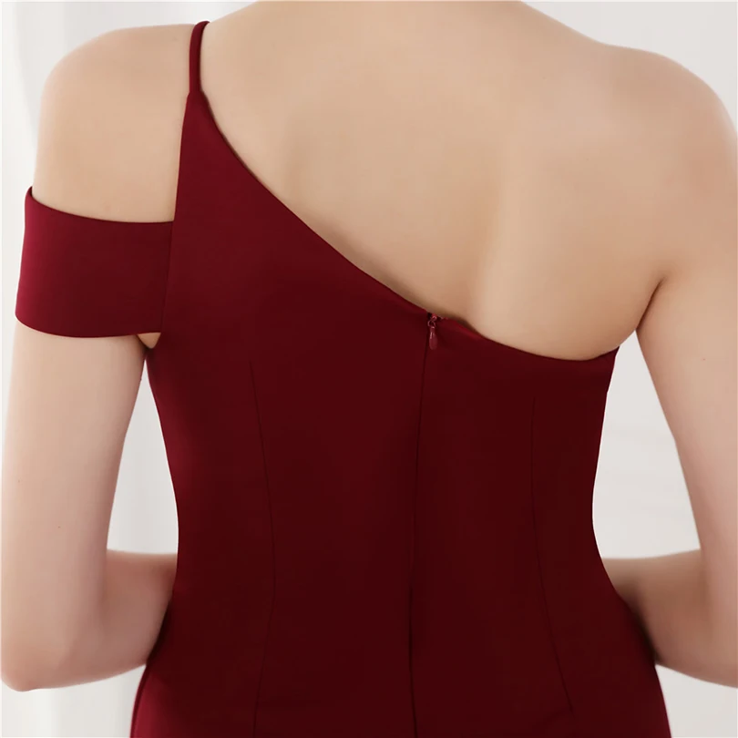 經典晚禮服系列,採用單肩削肩剪裁搭配魚尾裙襬設計,散發極致女性魅力。無袖設計與貼身剪裁完美勾勒身形曲線,展現典雅中帶點性感氛圍,特別適合參加各類正式晚宴、派對與畢業舞會。