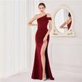 單肩亮珠性感魚尾晚禮服|內建胸墊|緞面修身剪裁|無拖尾設計|春夏秋冬皆宜穿