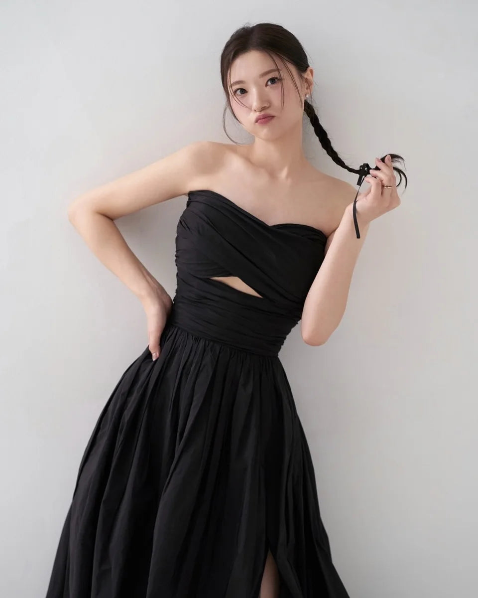 這款正式晚禮服融合復古元素與現代剪裁,適合各年齡層女性出席各式正式場合,如晚宴、舞會、宴會等。選用塔夫綢面料與絲綢混紡,整體線條流暢優雅,內置胸墊設計讓穿著更服貼舒適,是每位女性衣櫃中的經典款式。