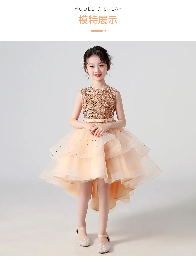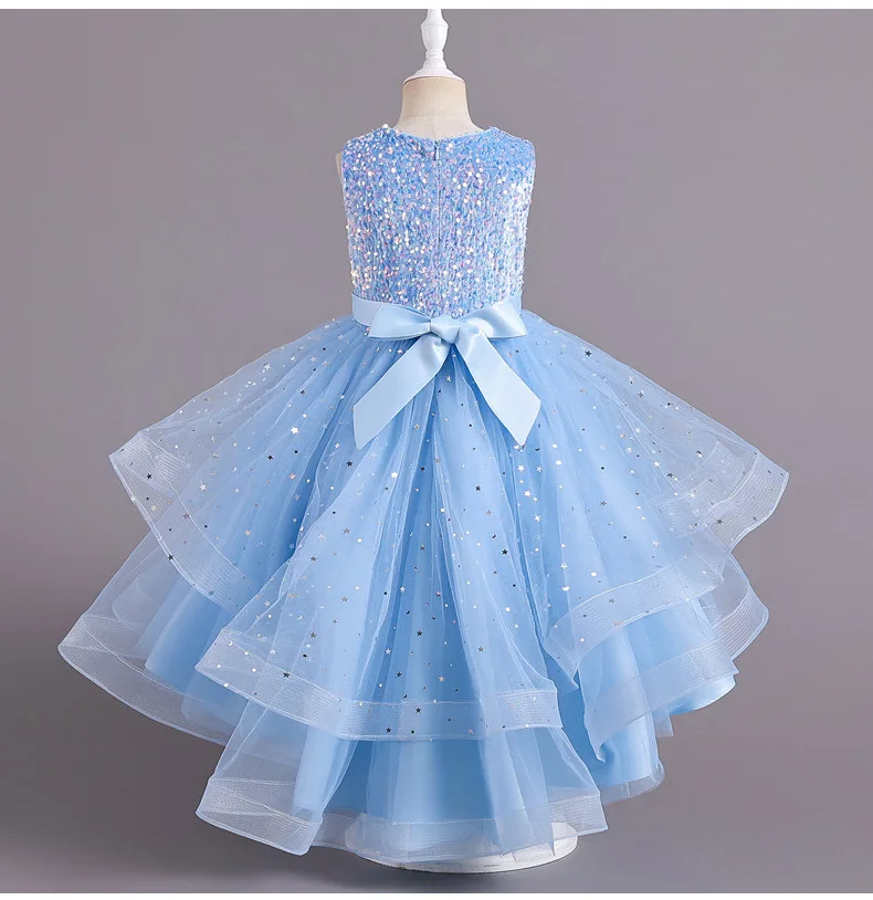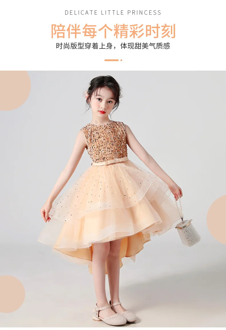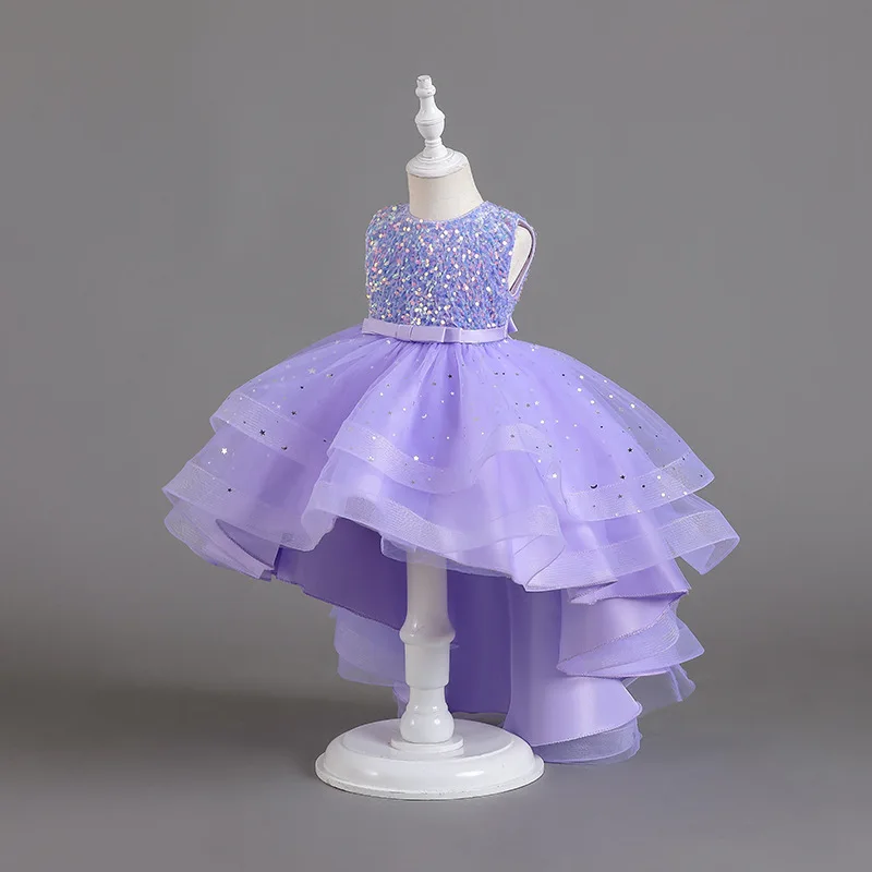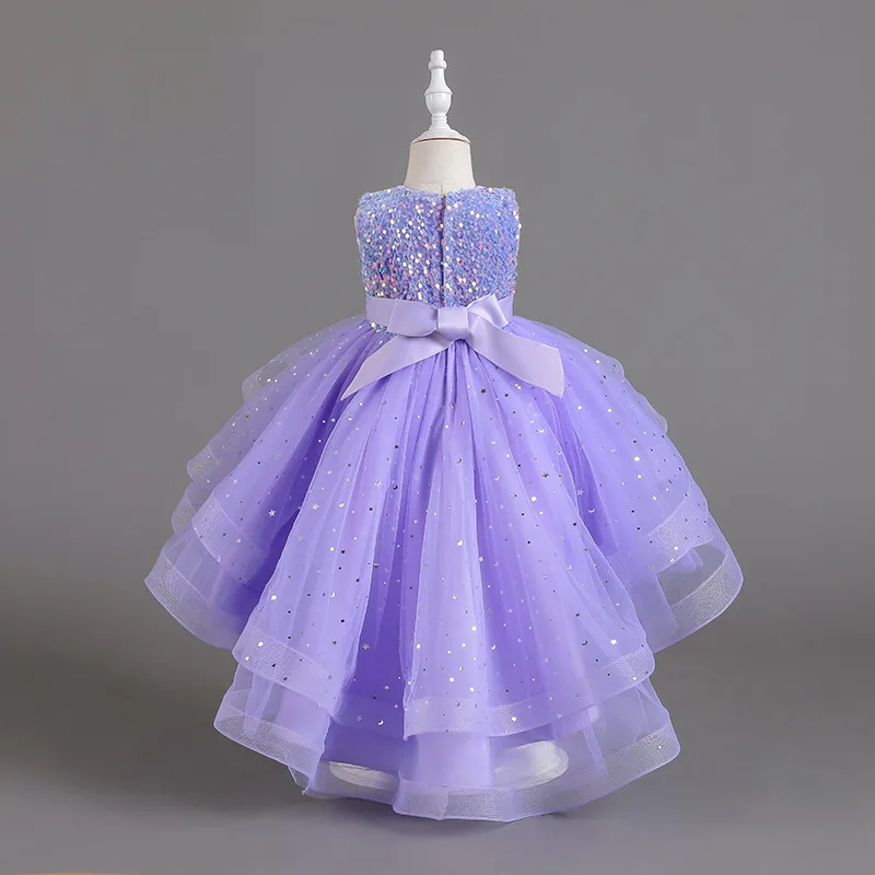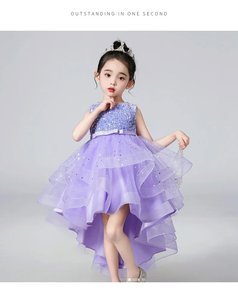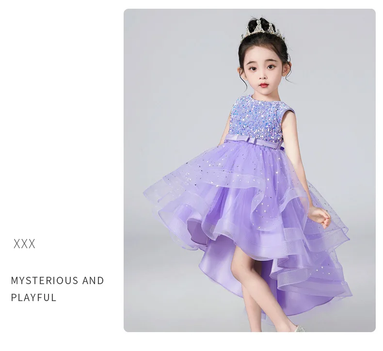 兒童奢華晚禮服長裙亮片丁香色衣服