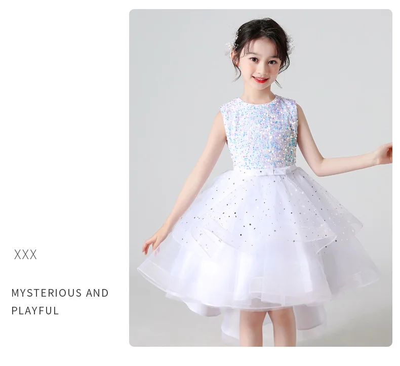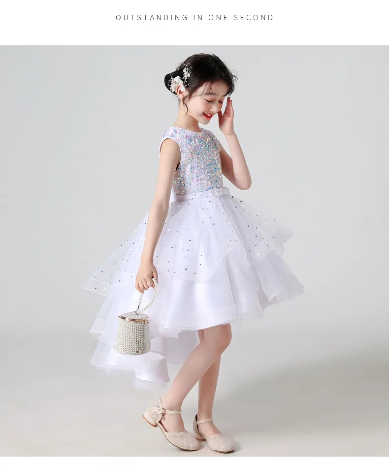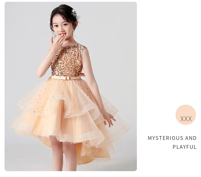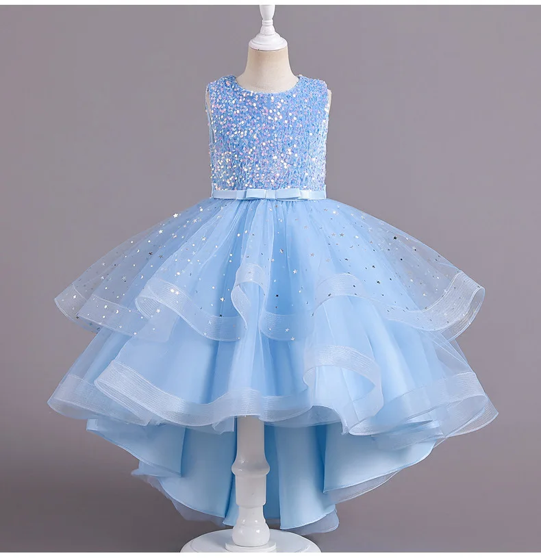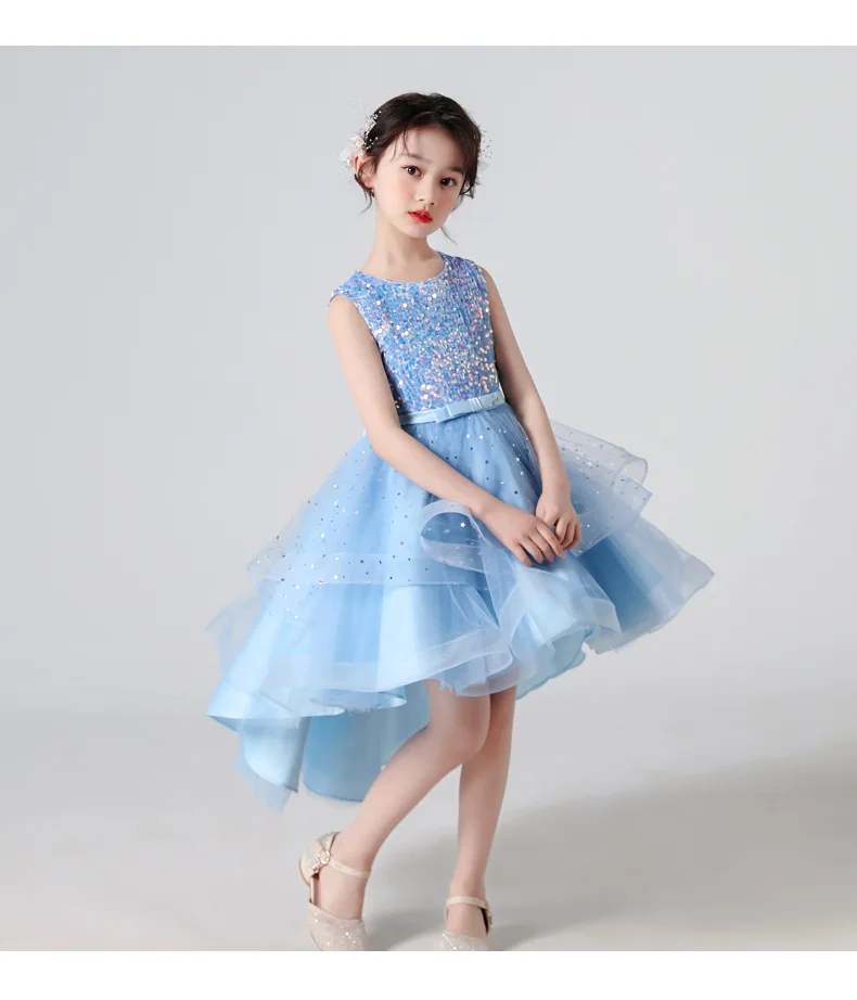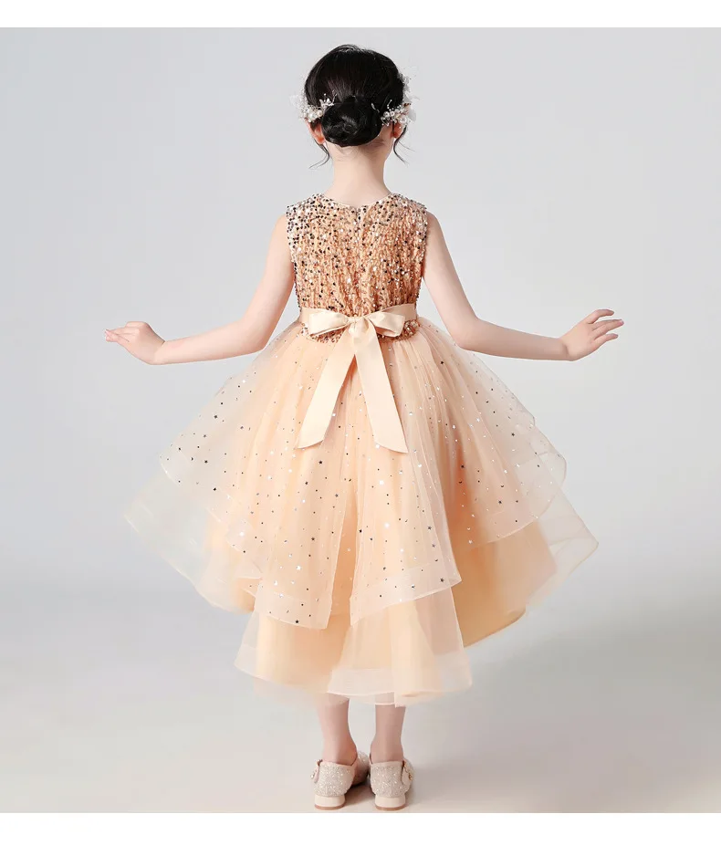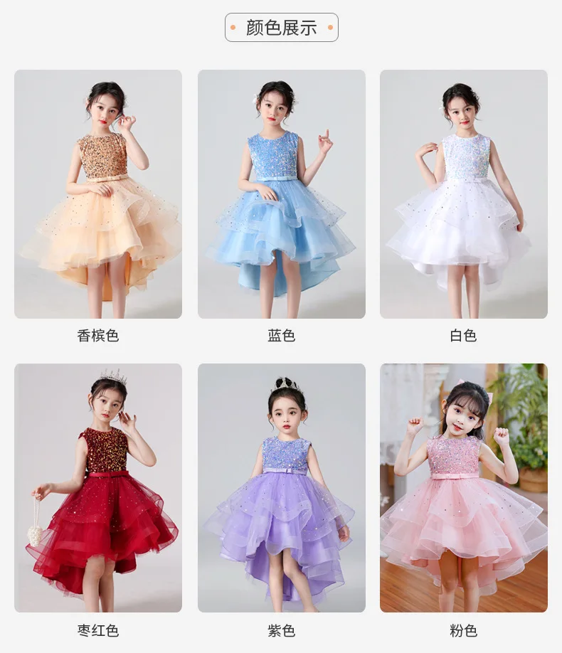 兒童奢華晚禮服長裙亮片丁香色衣服
