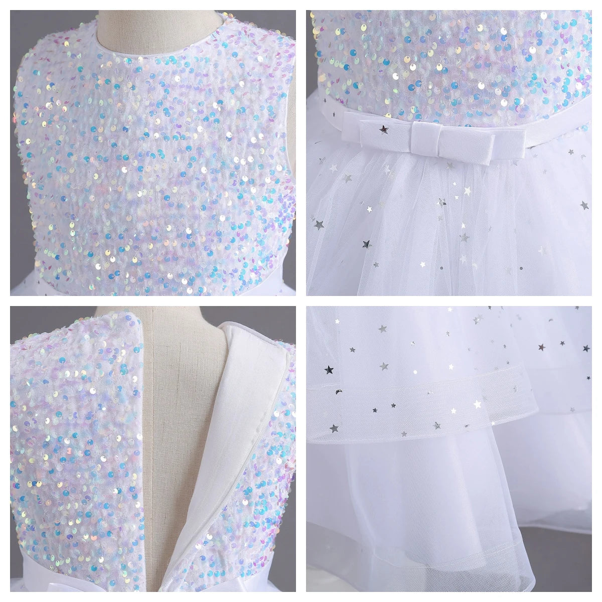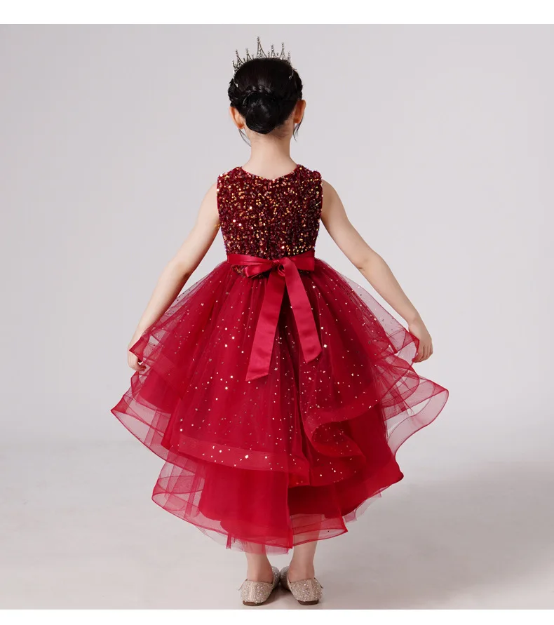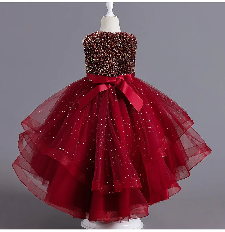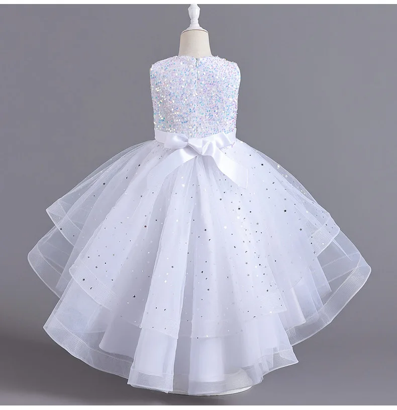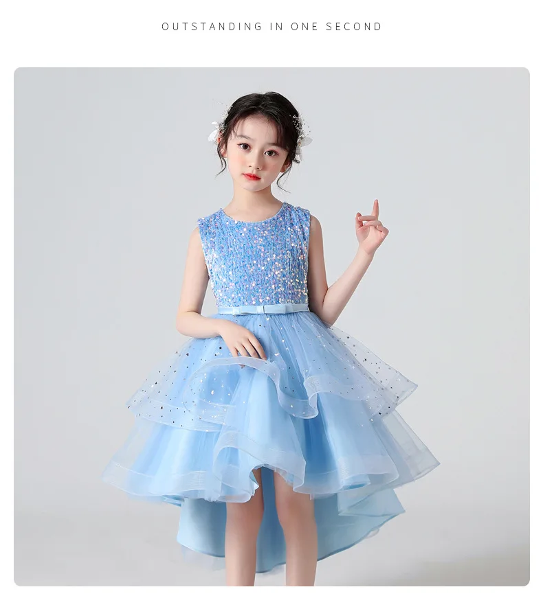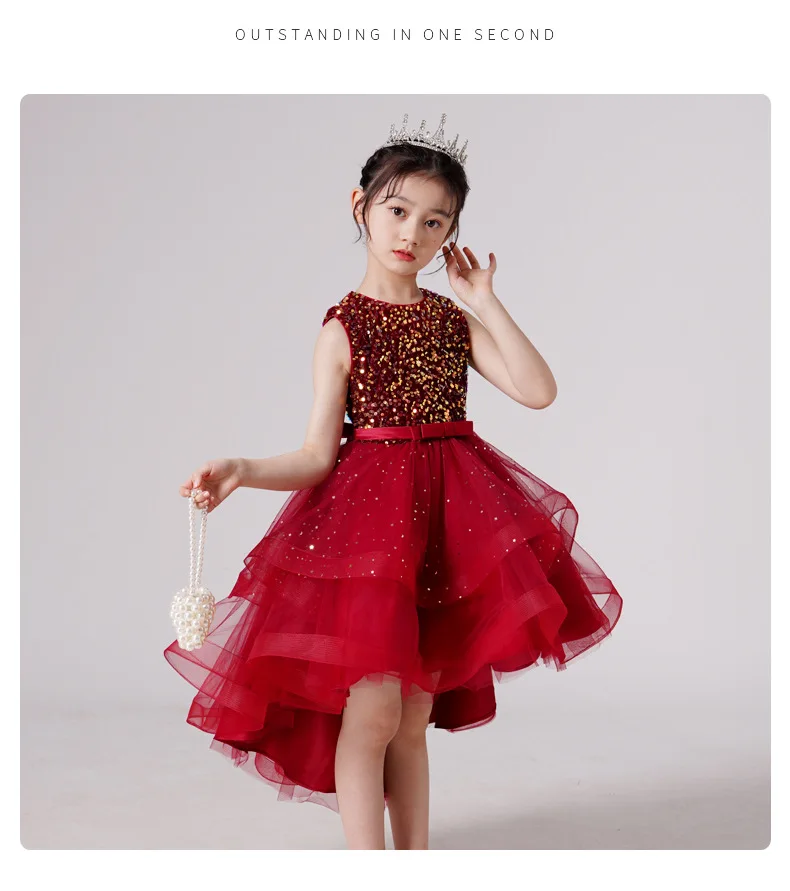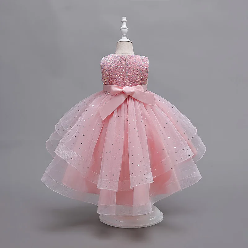兒童奢華晚禮服長裙亮片丁香色衣服