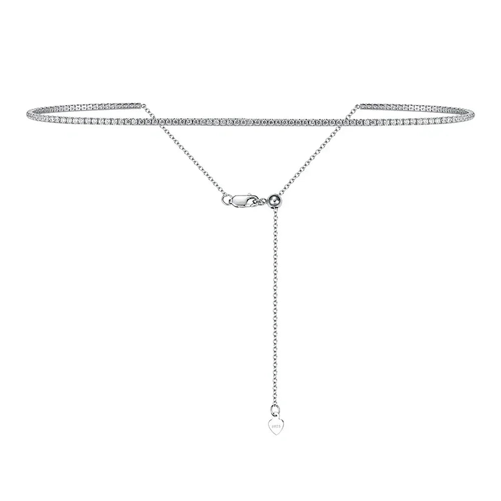 2mm莫桑石鑽石網球頸鍊|925純銀方鑽