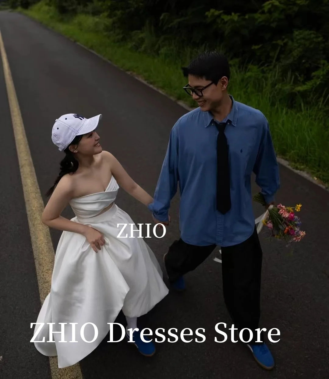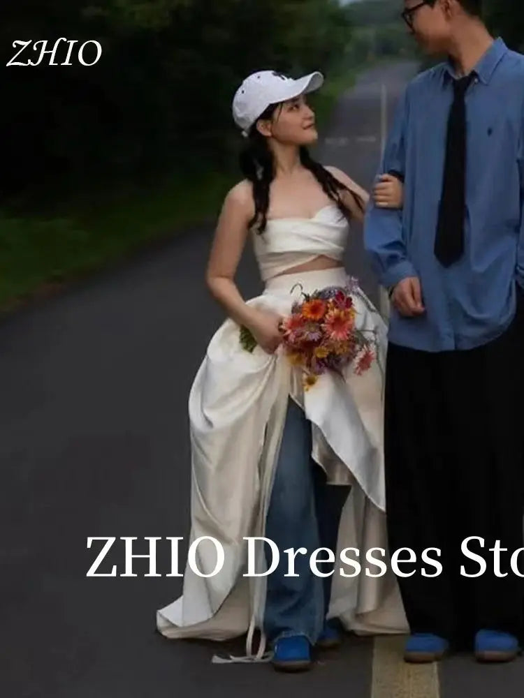 本款為兩件式設計的婚禮禮服,採用A字裙擺剪裁與交叉裝飾細節,呈現自然優雅的輪廓。背面為綁帶式設計,方便調整鬆緊。裙長及地,附有小拖尾,適合拍攝、婚禮派對等場合。