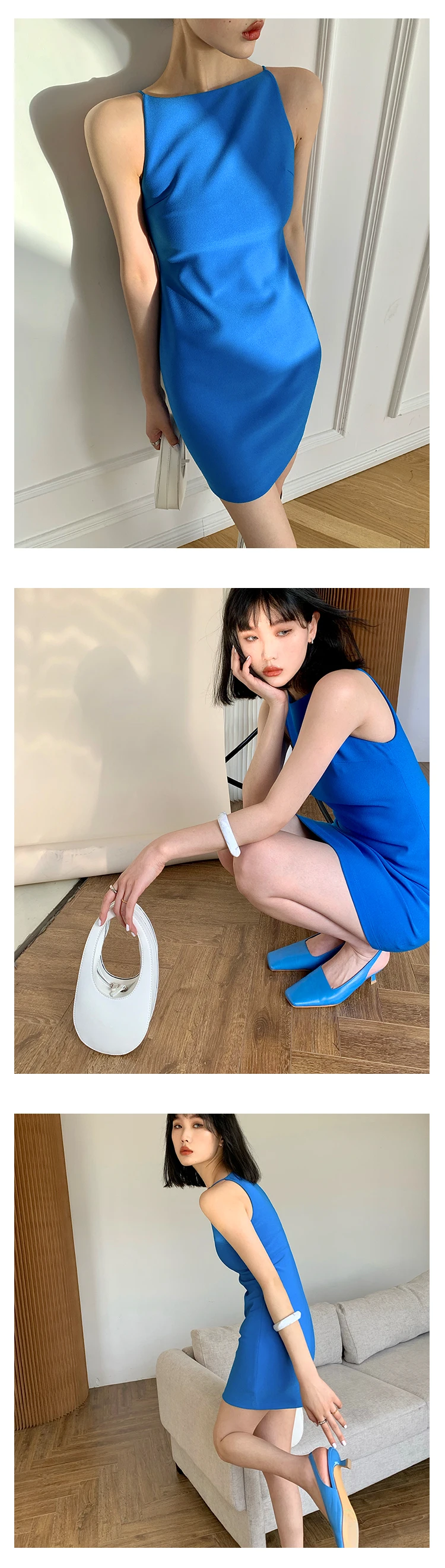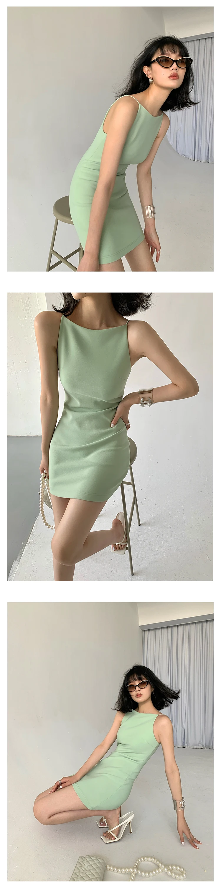 【夏季新品】細肩帶優雅削肩小禮服|高腰剪裁顯瘦迷你洋裝|派對/聚會/夜店穿搭推薦