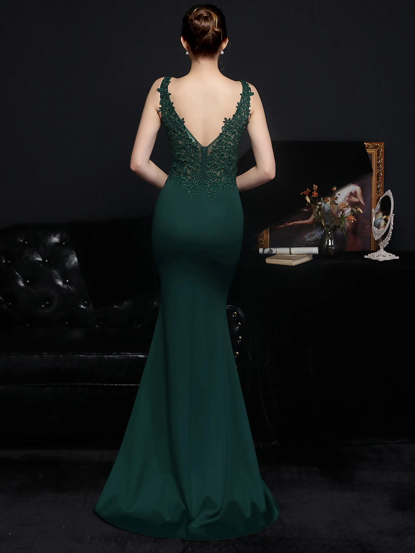 4. 禮服都是手工製作,因此每件禮服的圖案位置會略有不同,這是正常現象。