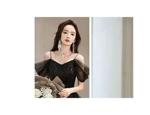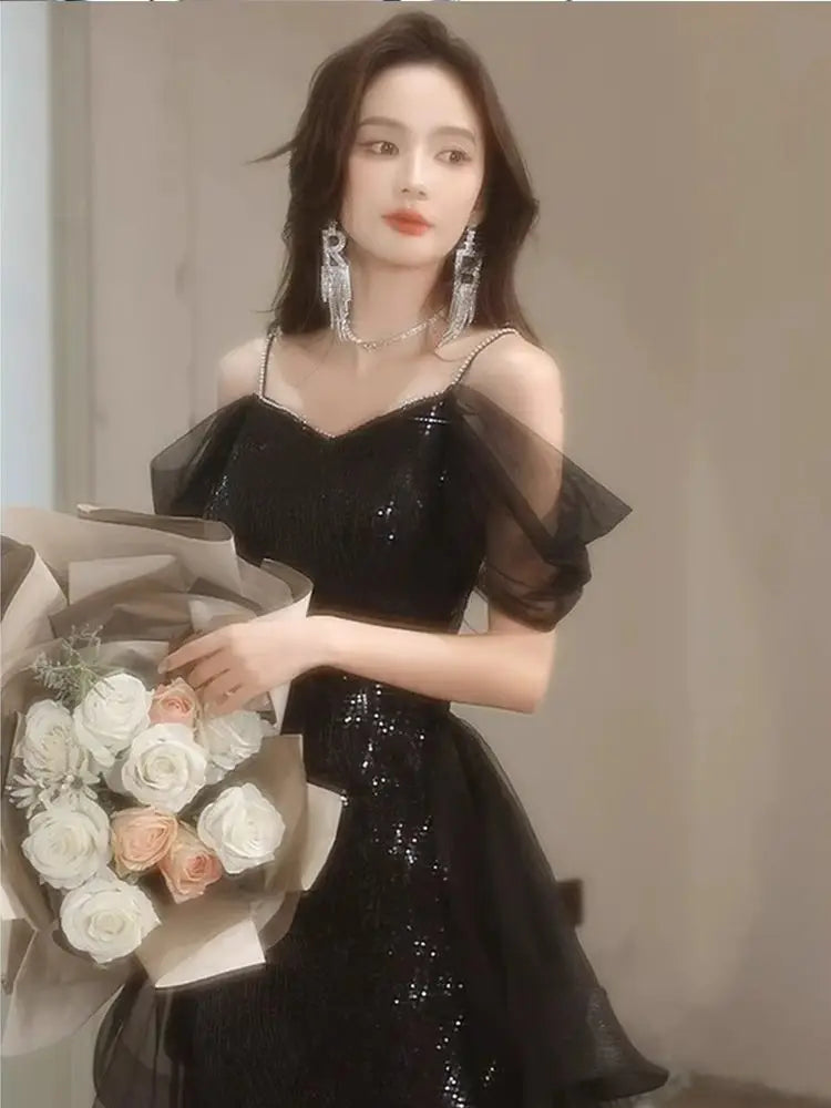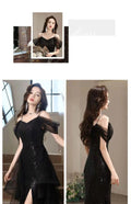 【訂製亮片美人魚晚禮服】一字肩 × 無袖 × 全片亮片 × 修身魚尾裙 × 晚宴 / 舞會款