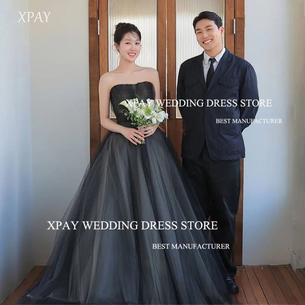 此款黑色無肩設計的A字紗裙禮服,適合婚禮派對、正式晚宴、韓系婚紗拍攝等場合。裙身以輕盈薄紗搭配壓克力雪紡材質,展現流動感與輕柔質地。內建胸墊,後背綁帶設計,提供尺寸與顏色客製,適合不同體型需求。