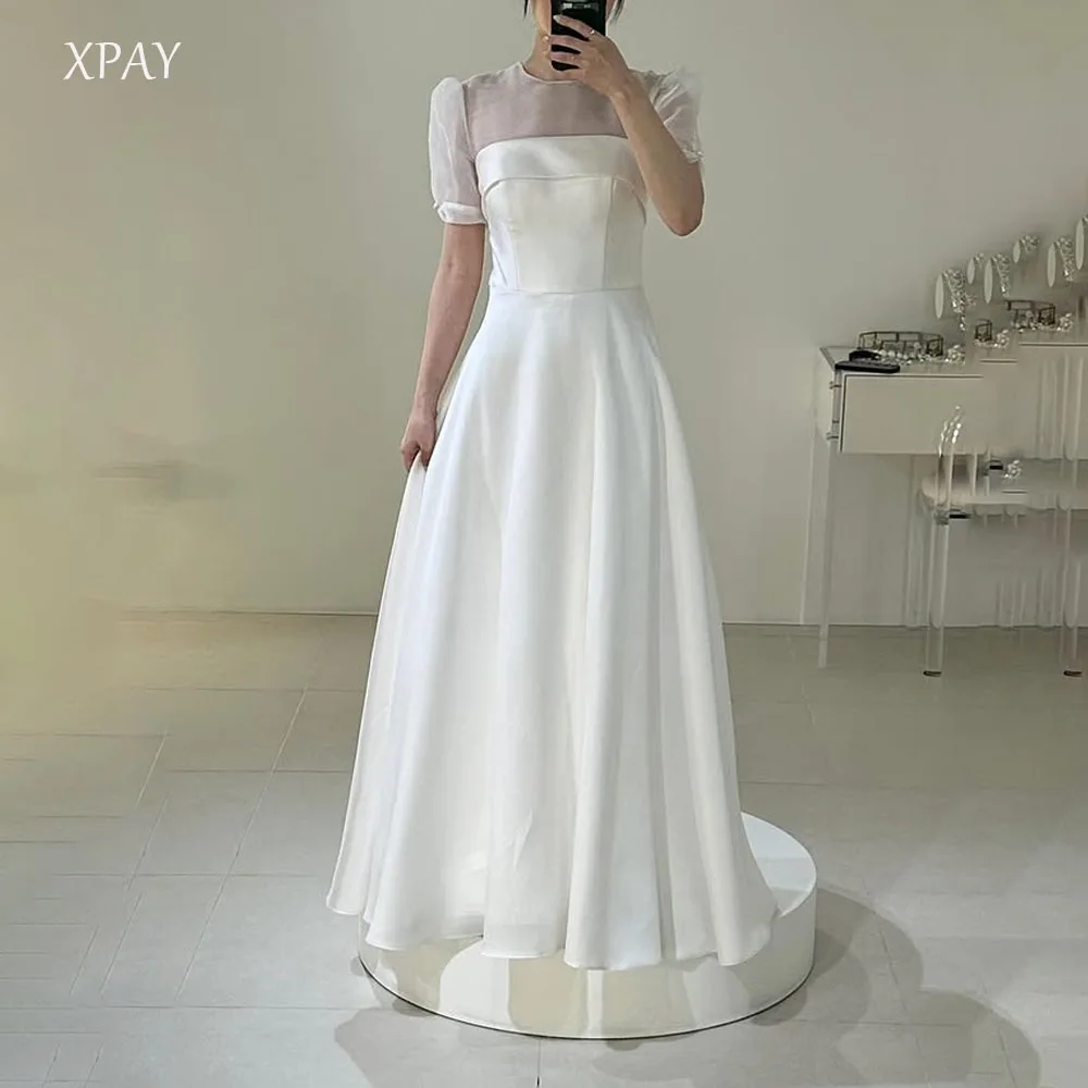 此款婚紗採用圓領設計與澎袖長袖,整體剪裁為 A 字型,展現簡約經典風格。選用柔滑緞面布料,適合婚禮與攝影穿著。背部採綁帶設計,可調整貼合度。提供標準尺碼與客製尺寸服務,亦可依需求訂製顏色。