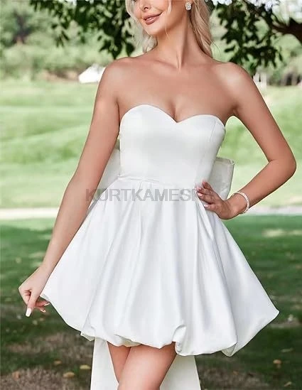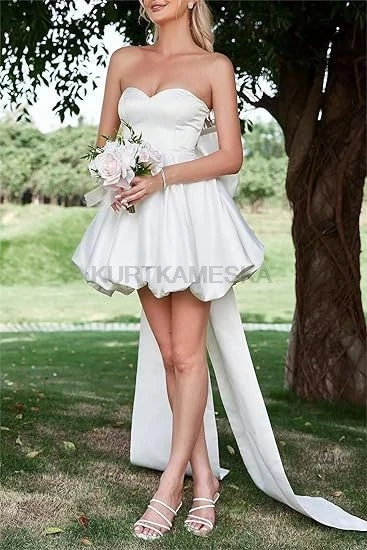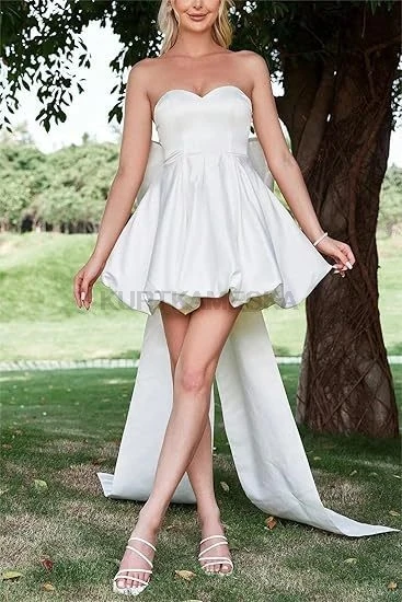 短禮服|白色禮服|無肩禮服|派對洋裝|婚禮穿搭|蝴蝶結洋裝|訂製禮服|小禮服|夏季洋裝|緞面洋裝|新娘二進禮服
