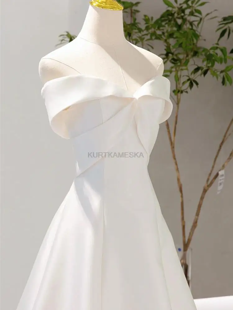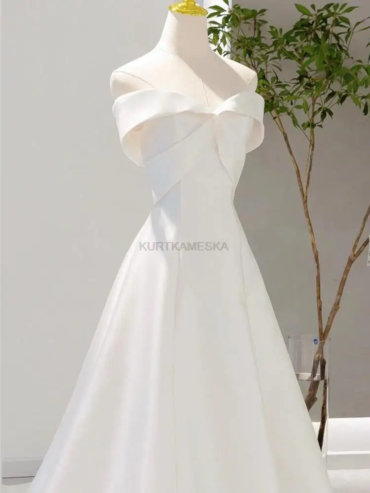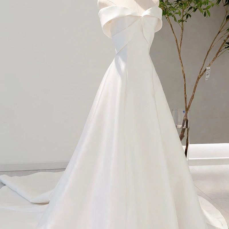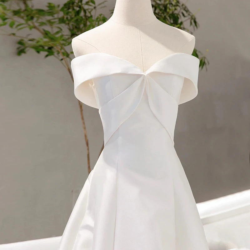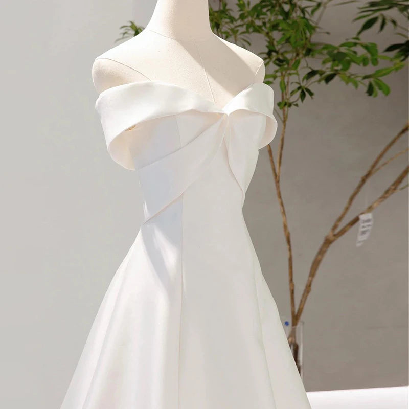 婚禮禮服|白色長洋裝|緞面洋裝|無肩洋裝|訂製禮服|新娘禮服|簡約禮服|夏季婚禮穿搭|婚紗外拍服裝|典雅長裙