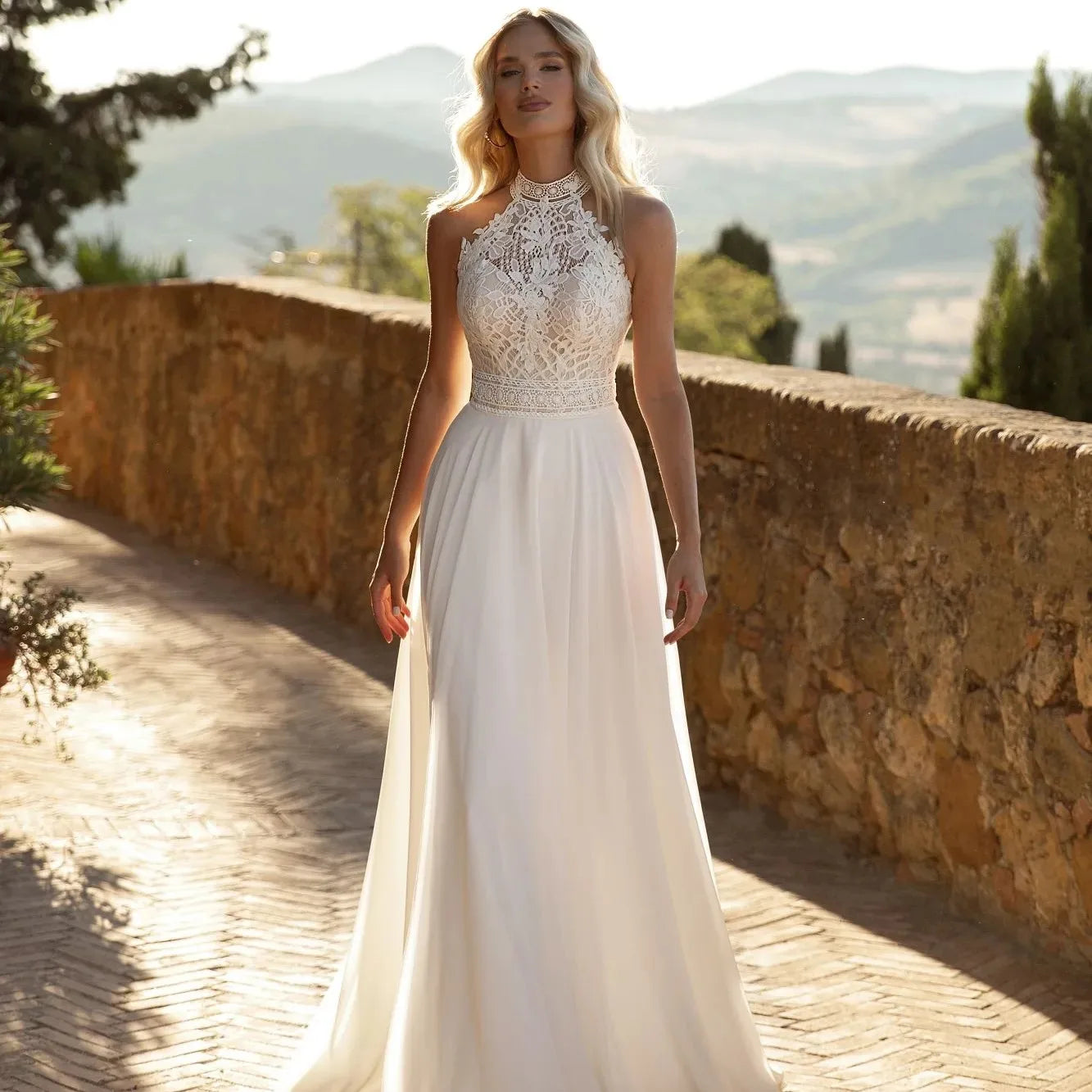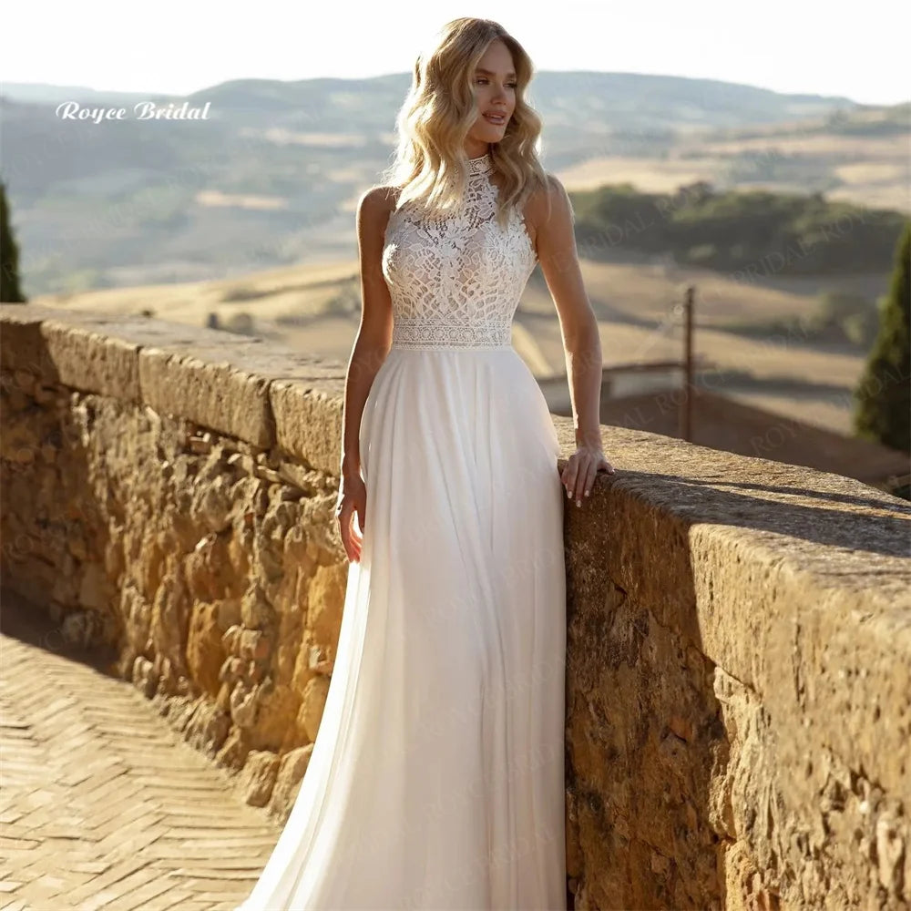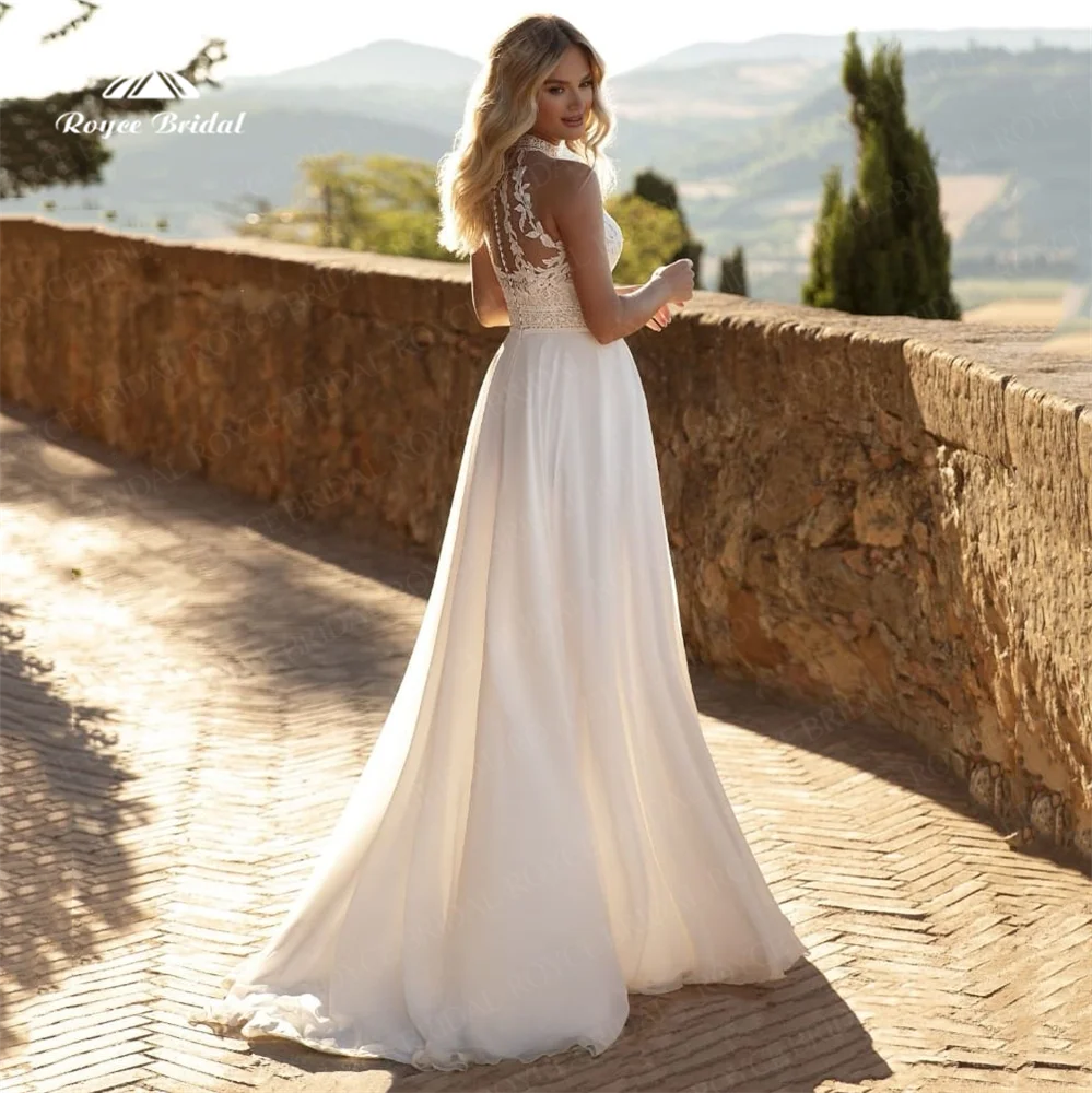這款 簡約風格的高領無袖雪紡婚紗,採用 輕盈雪紡面料,結合 蕾絲與荷葉邊細節,打造 浪漫飄逸的婚禮造型。適合 喜愛簡約優雅風格的新娘,並提供 可訂製尺寸與顏色,滿足個人化需求。