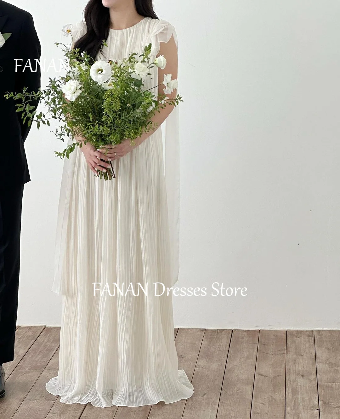 這款婚紗設計簡約高級,適合戶外婚禮、教堂婚禮或注重質感細節的新娘。