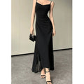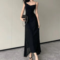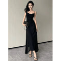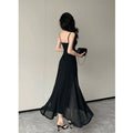 這款韓系風格的細肩帶洋裝,採用修身剪裁與中長裙長度,搭配性感V領與露背設計,展現優雅與性感兼具的氣質。適合多種場合穿搭,如約會、派對、旅行或日常休閒。