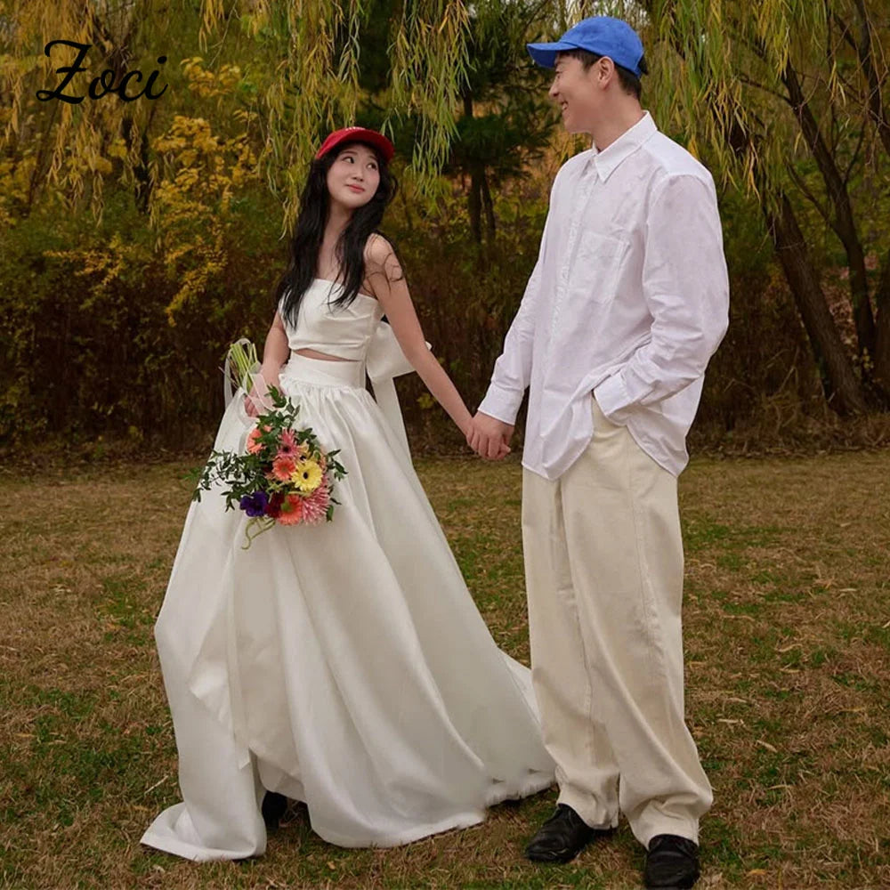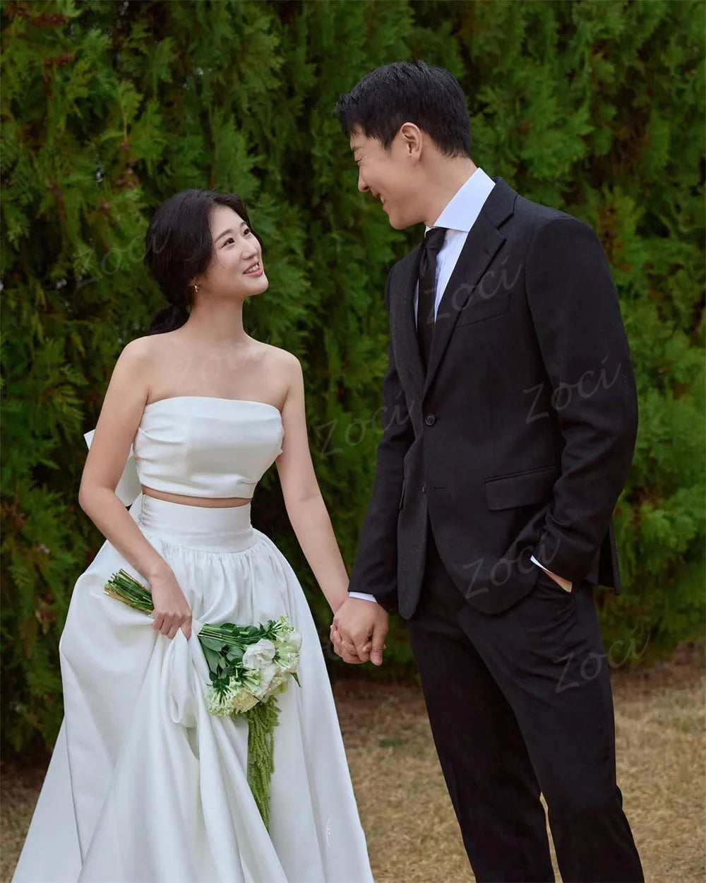 簡約現代款無肩帶露背婚紗 A字落地禮服