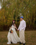 A1: 輕婚紗的設計簡約、材質輕盈,方便新人行動與收納。相較於傳統婚紗,它更適合戶外、旅拍或小型婚禮,價格也通常更具彈性,是您高 CP 值的好選擇。