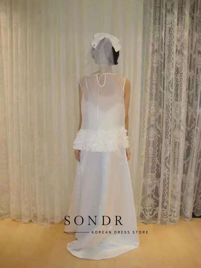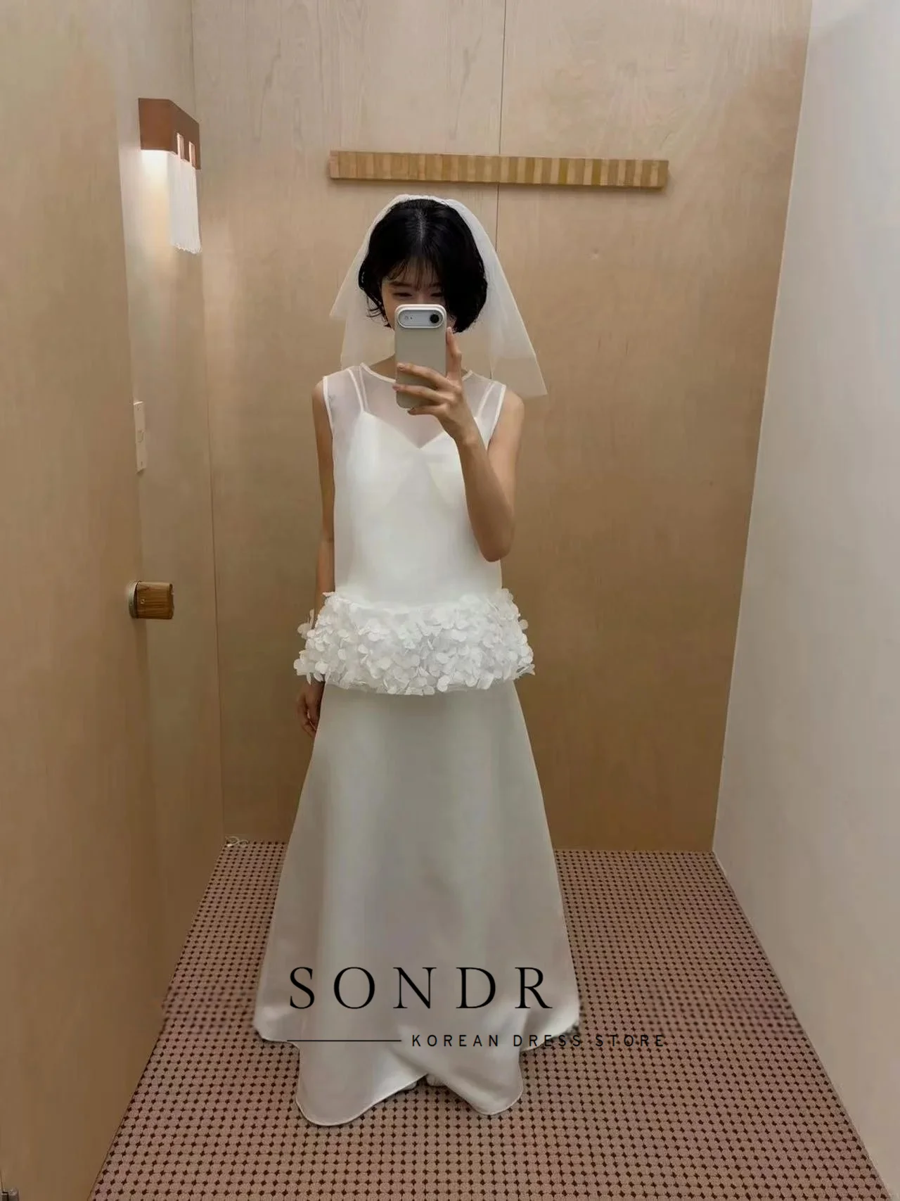 韓版兩件式設計:優雅與靈活的完美結合 WeddLin 推薦這款結合韓系美學與簡約風格的輕婚紗。採用光澤緞面布料,不僅在自然光下具備良好的顯色效果,兩件式的剪裁更讓妳在行走、坐下或變換拍攝場景時更加輕鬆。