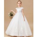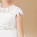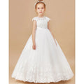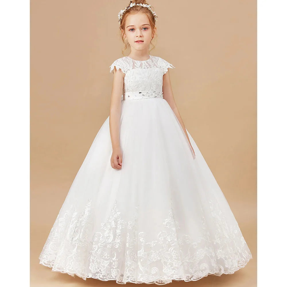 這款公主花童禮服,採用經典花瓣袖設計,結合精緻蕾絲、歐根紗與薄紗材質,打造出優雅的蓬蓬裙輪廓。