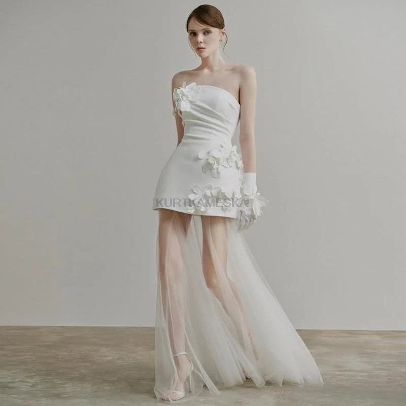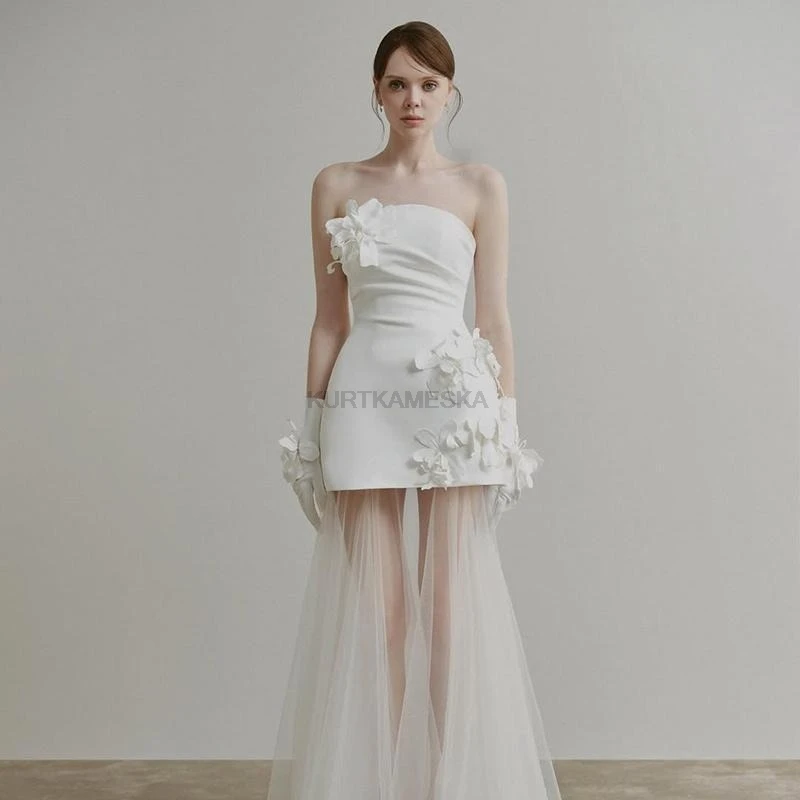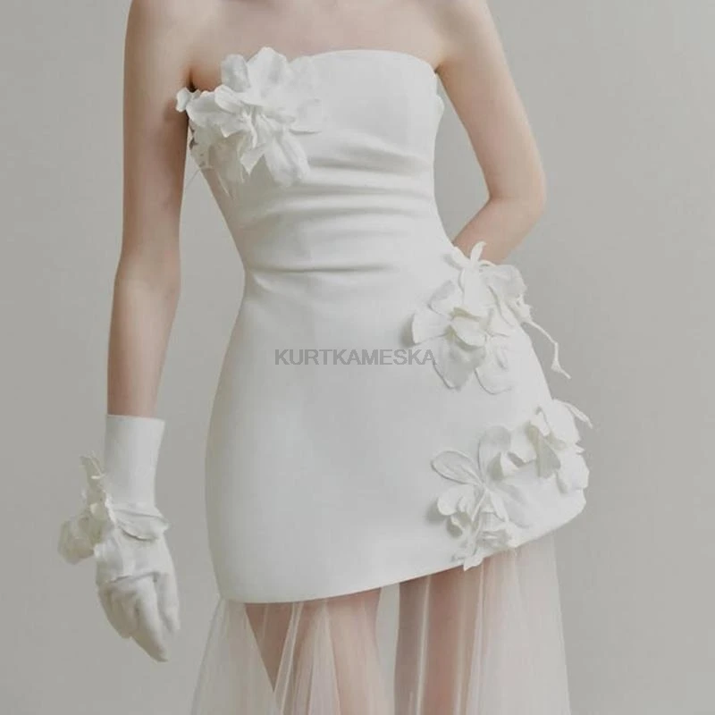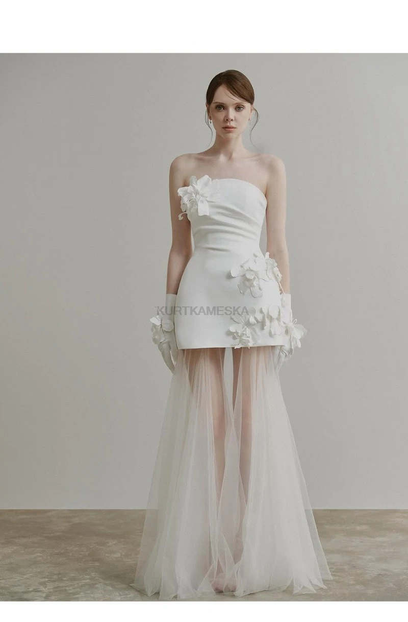 想要簡單卻不平凡的婚紗造型嗎? 這款禮服以極簡的平口剪裁為基底,腰間點綴立體花朵裝飾,完美平衡了甜美與優雅。流暢的 A-Line 緞面裙襬,讓妳在行走間散發自然光澤,非常適合自助婚紗攝影、海外婚禮或小型晚宴。