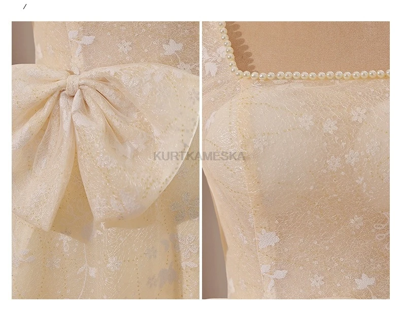 手工製作:每件禮服皆為手工製作,珍珠裝飾位置可能有些微不同,這正是手作禮服的獨特性。