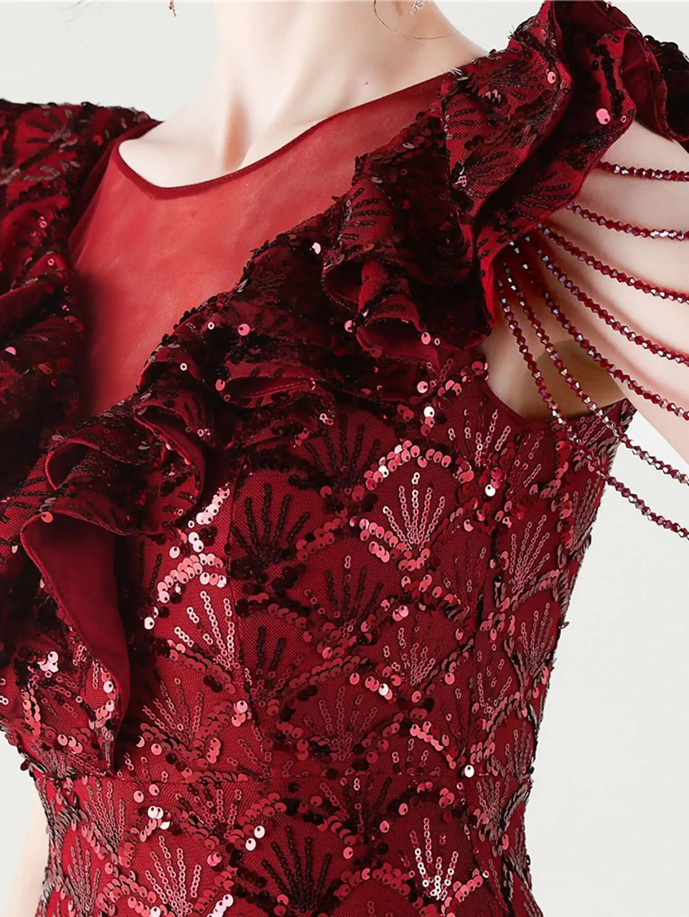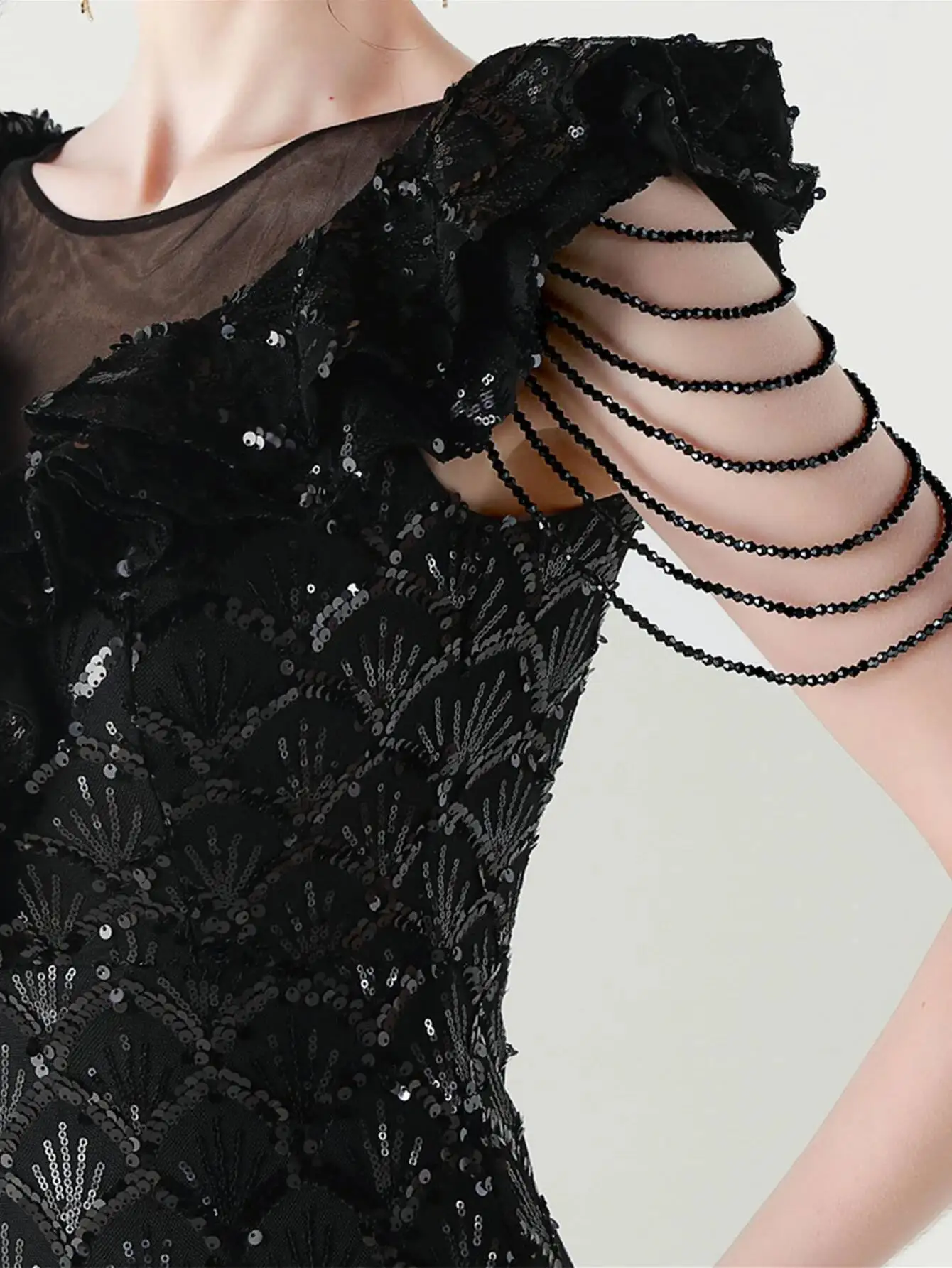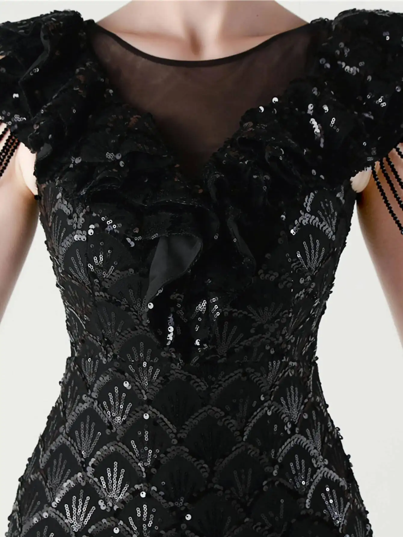 光感亮片布料:全件採用細密亮片,隨動作閃爍層次光芒,在晚宴或活動燈光下具備絕佳的視覺效果。